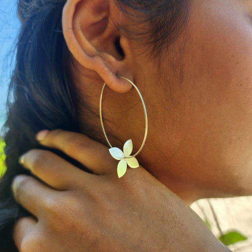 Flower Hoop Earrings Large - 925 Sterling Silver FJD$