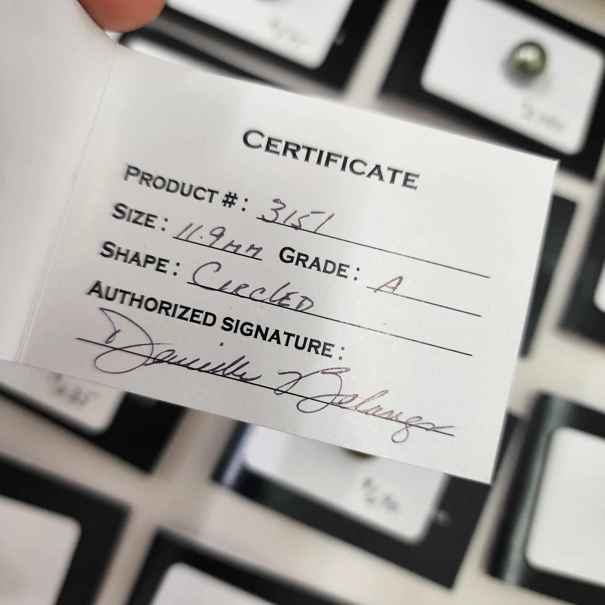 PEARL - Civa Fiji Saltwater pearl with grade certificate: 11.9 mm, Circled, Grade A