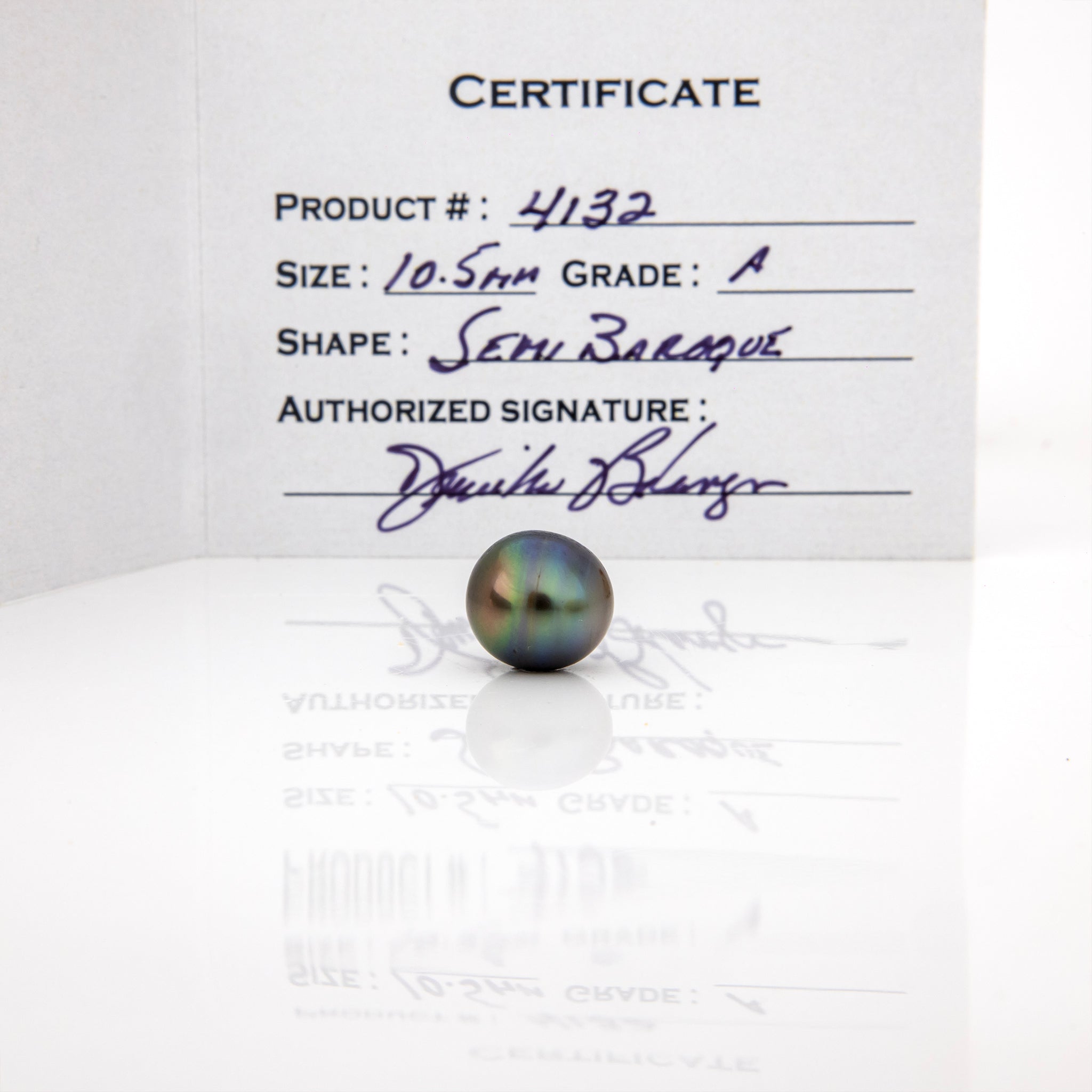 PEARL - Civa Fiji Saltwater pearl with grade certificate: 10.5 mm, Semi-Baroque, Grade: A