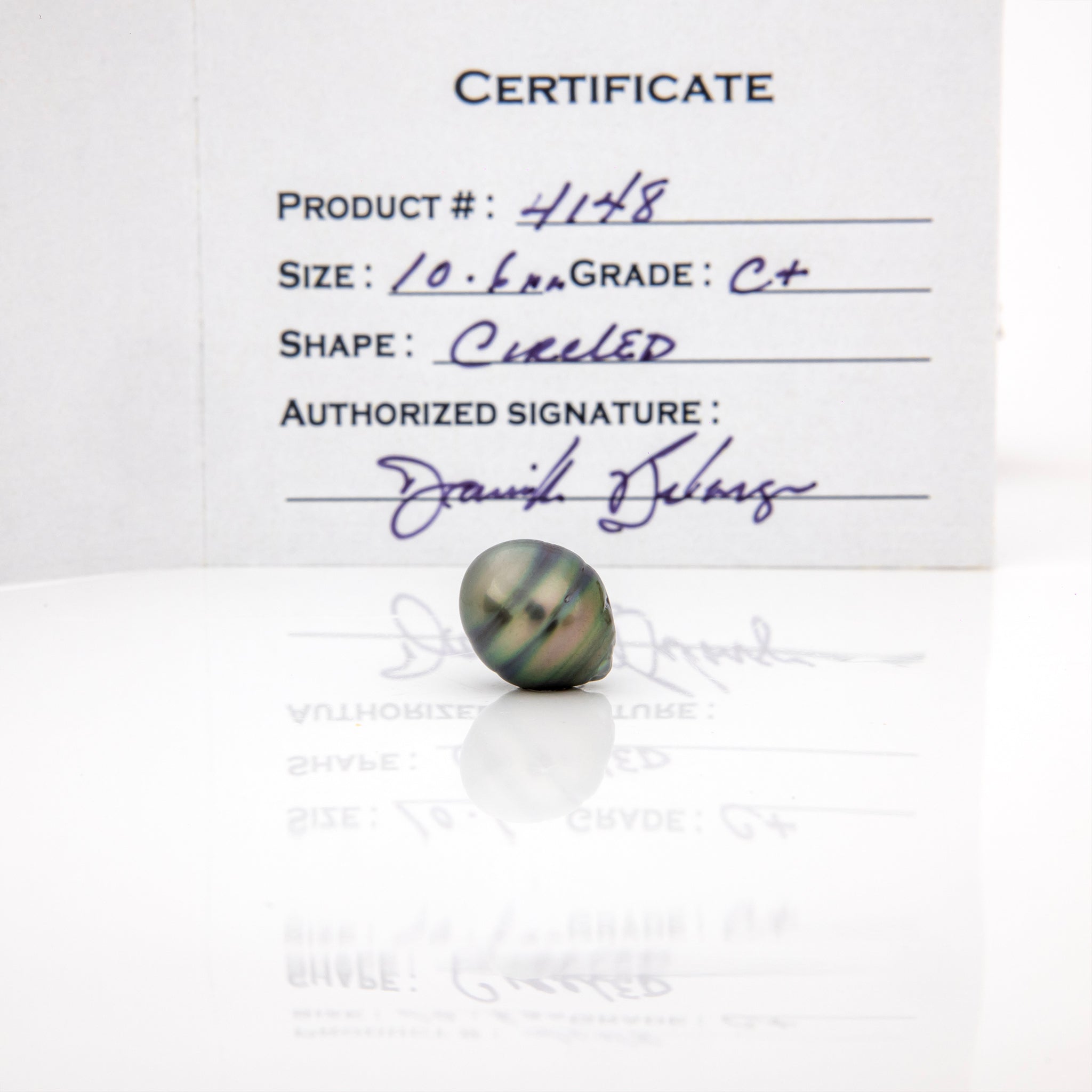 PEARL - Civa Fiji Saltwater pearl with grade certificate: 10.6 mm, Circled, Grade: C+