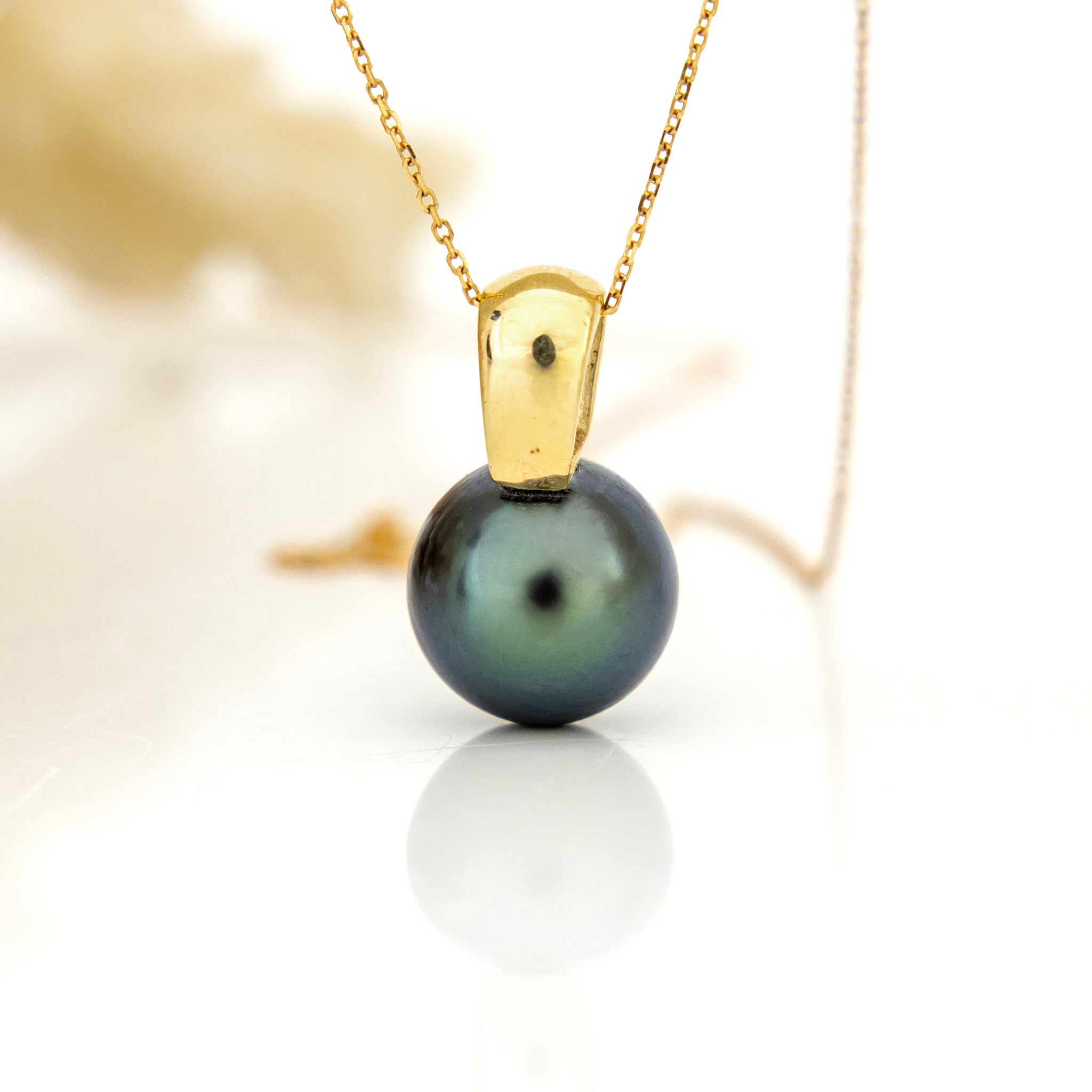 PEARL - Civa Fiji Saltwater pearl with grade certificate: 9.8 mm, Round, Grade A; deep blue tones