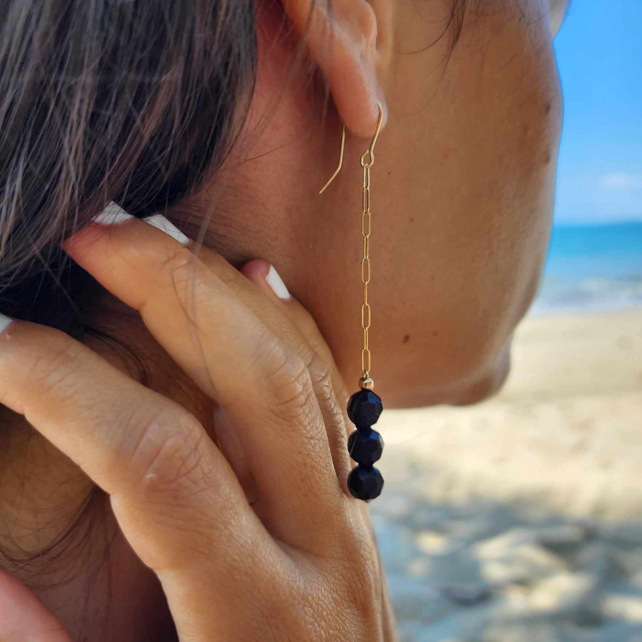 READY TO SHIP Natural Stone Drop Earrings - 14k Gold Fill FJD$