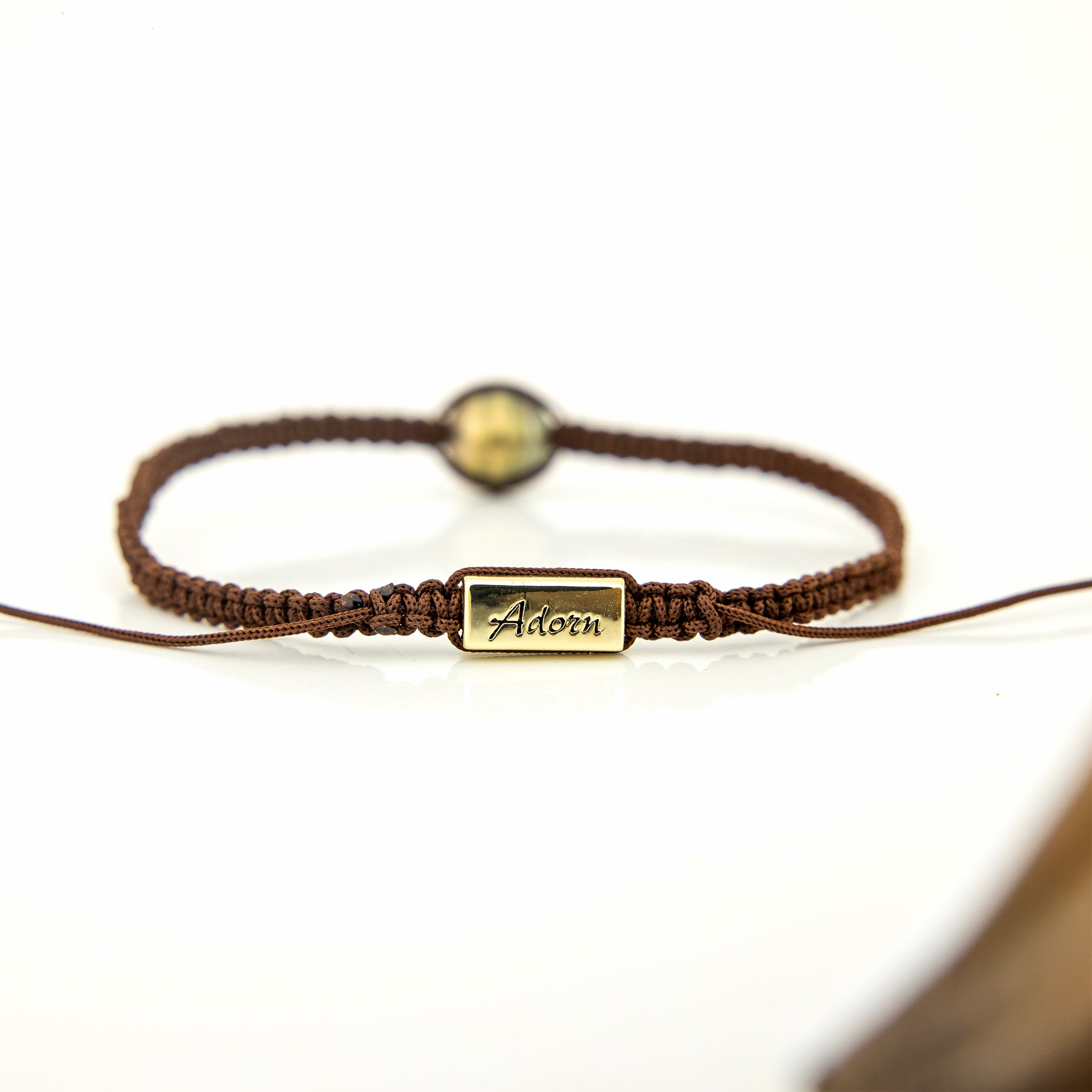 MATERIALS - Knotted silk nylon - chocolate brown, 14k Gold over brass Adorn bead
