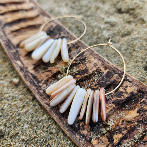 READY TO SHIP Tumbled Shell Hoop Earrings - 14k Gold Fill FJD$