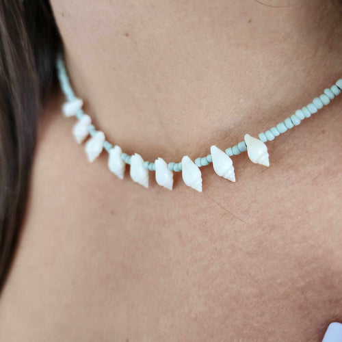 READY TO SHIP Bead & Shell Choker Necklace - 925 Sterling Silver FJD$