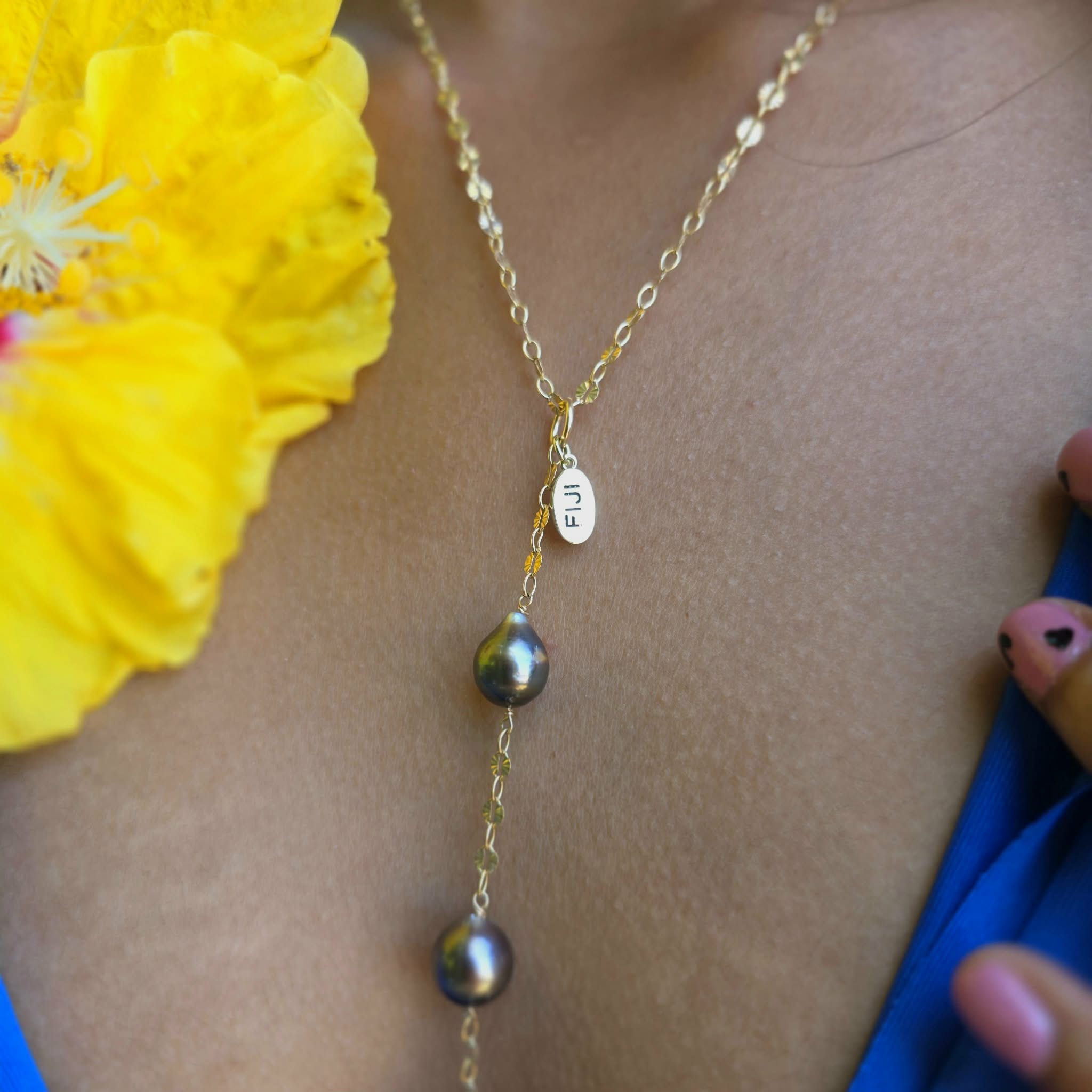READY TO SHIP Fiji Saltwater Pearl Lariat Y-Necklace - 14k Gold Fill FJD$