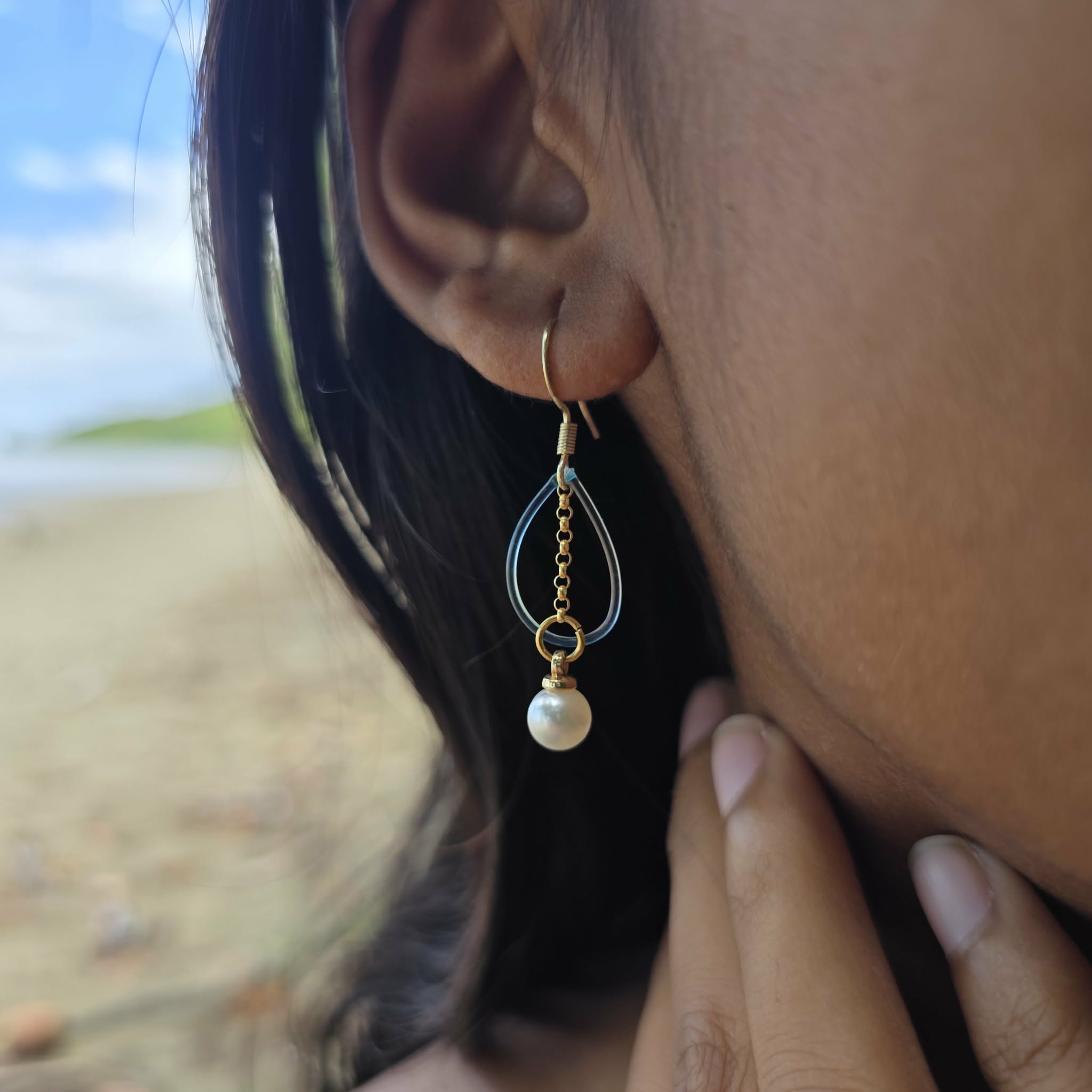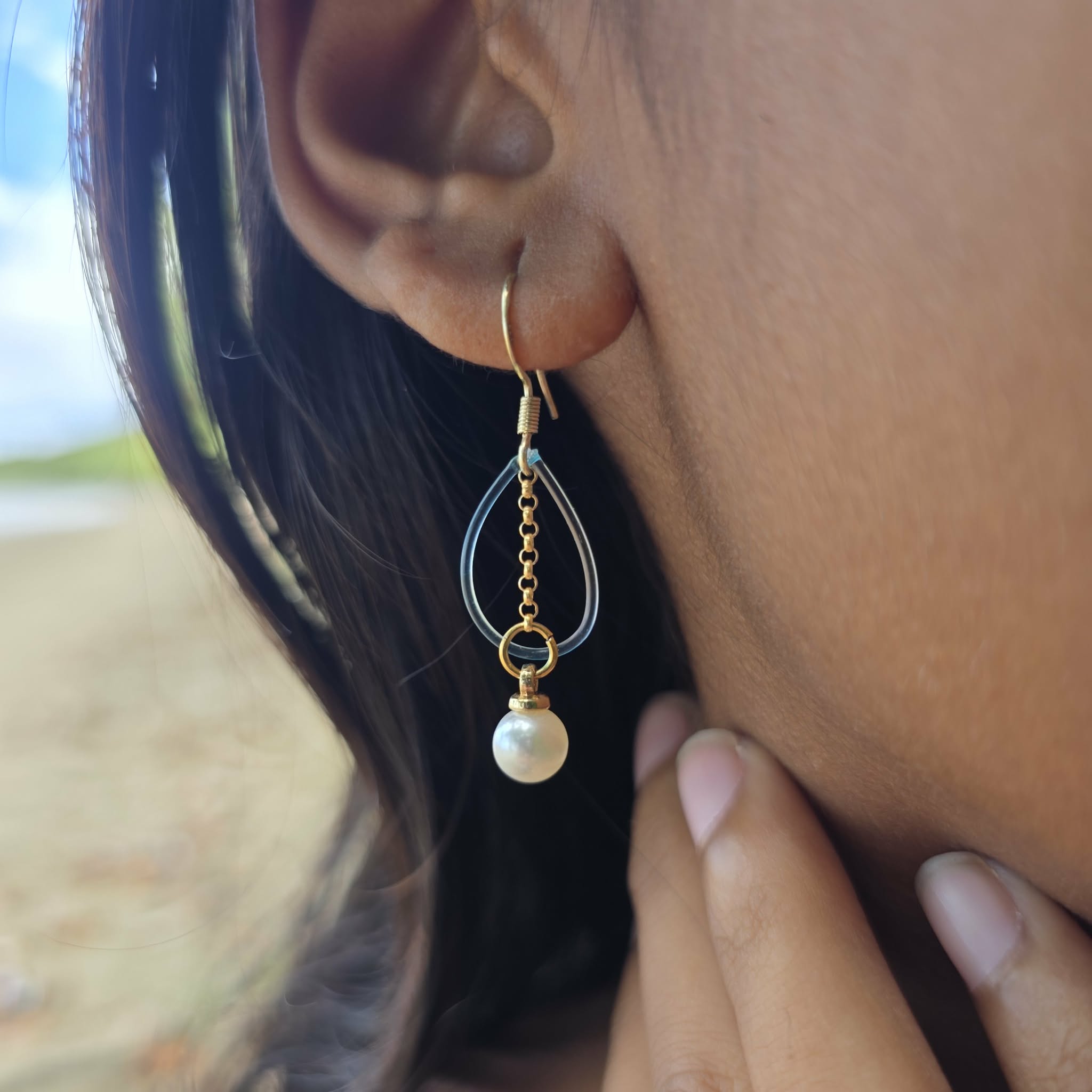 READY TO SHIP Freshwater Pearl & Fishing Line Earrings - 18k Gold Vermeil FJD$