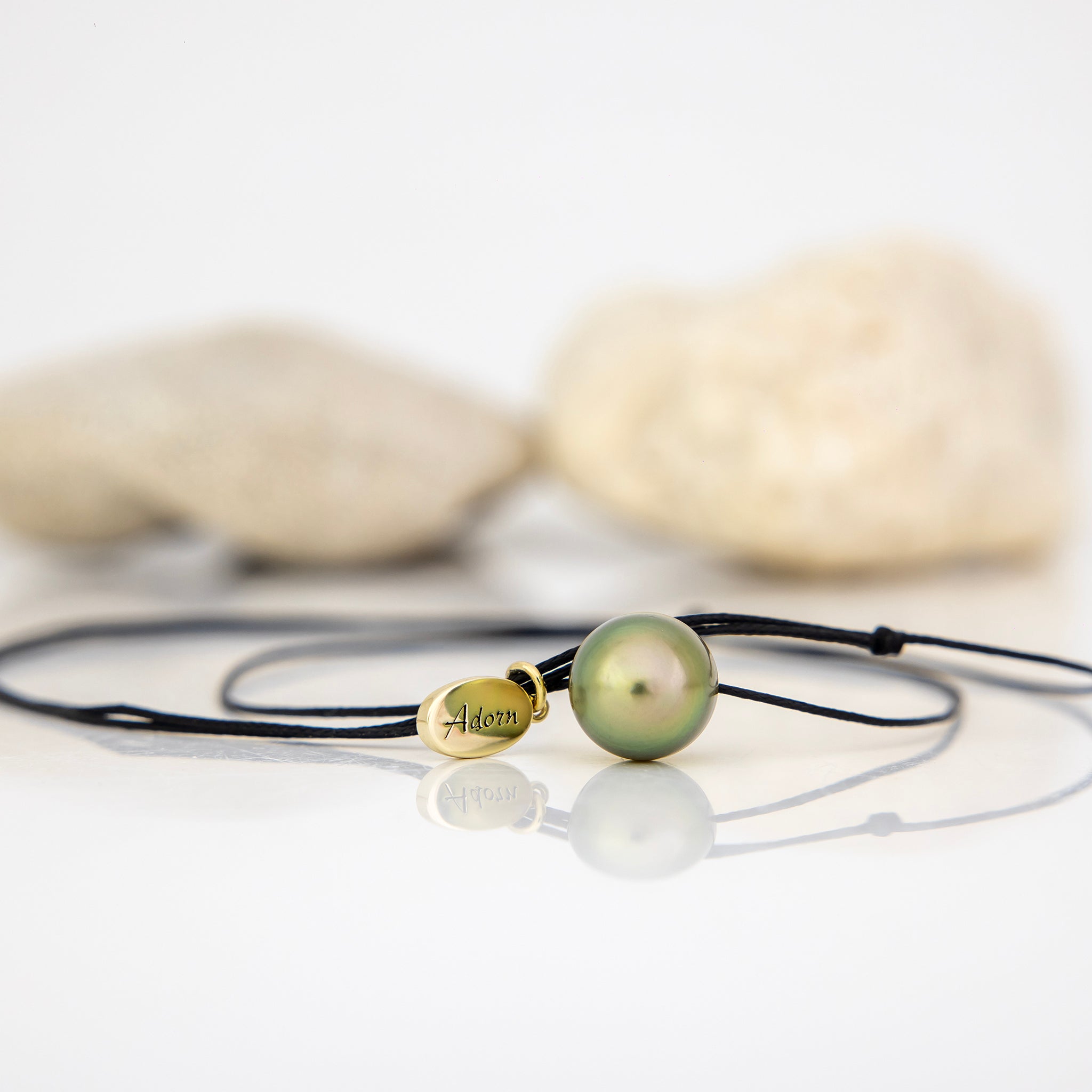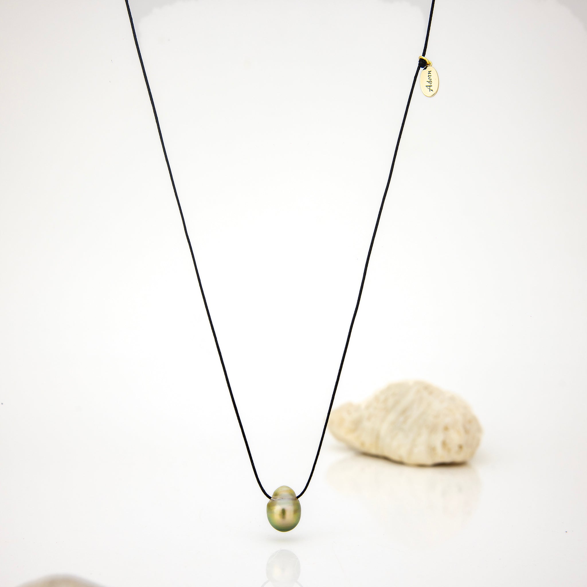 PEARL - Civa Fiji Saltwater Pearl: drop, vivid green / gold tones
