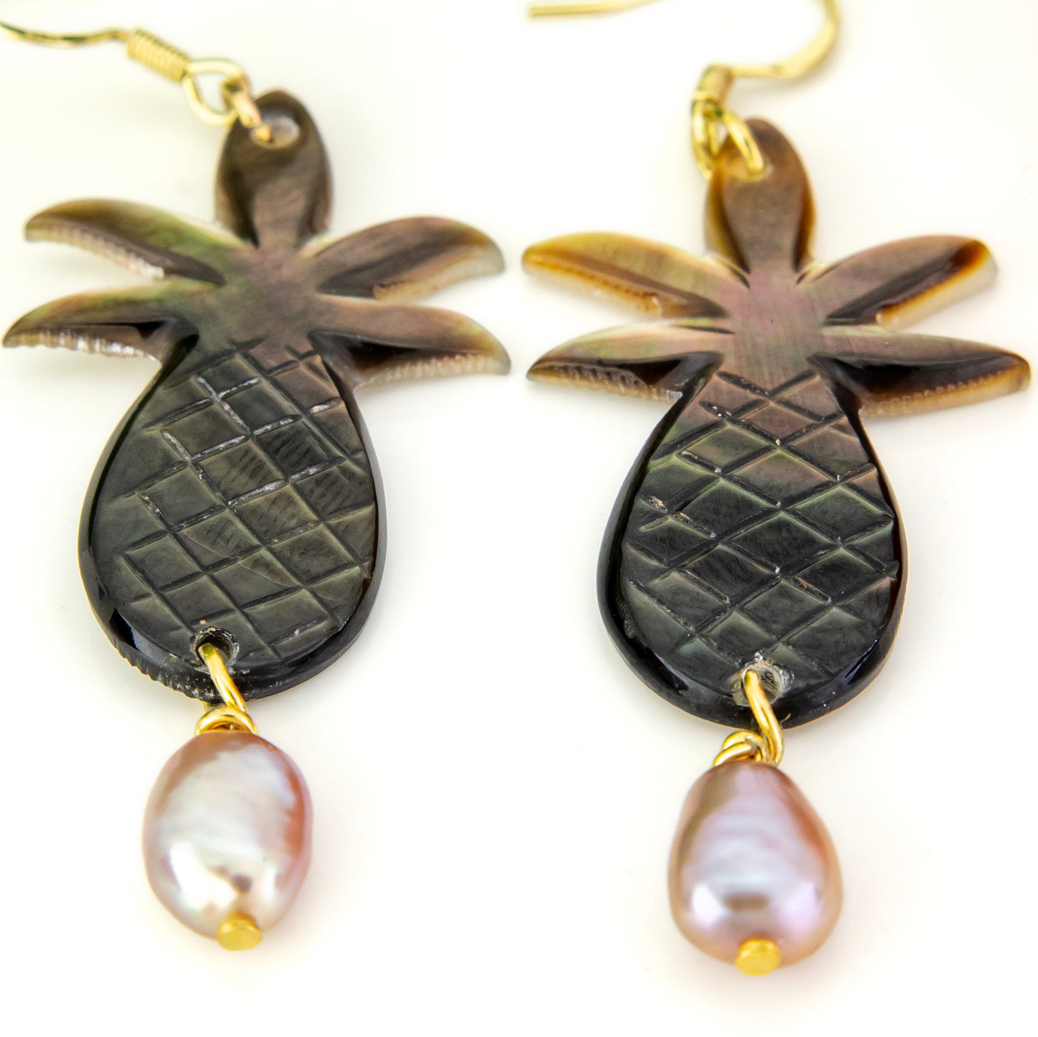 SIZE - total length of Mother of Pearl shell: 3.5 cm, width of shell: 2 cm, total length incl earhook & pearl: 6 cm