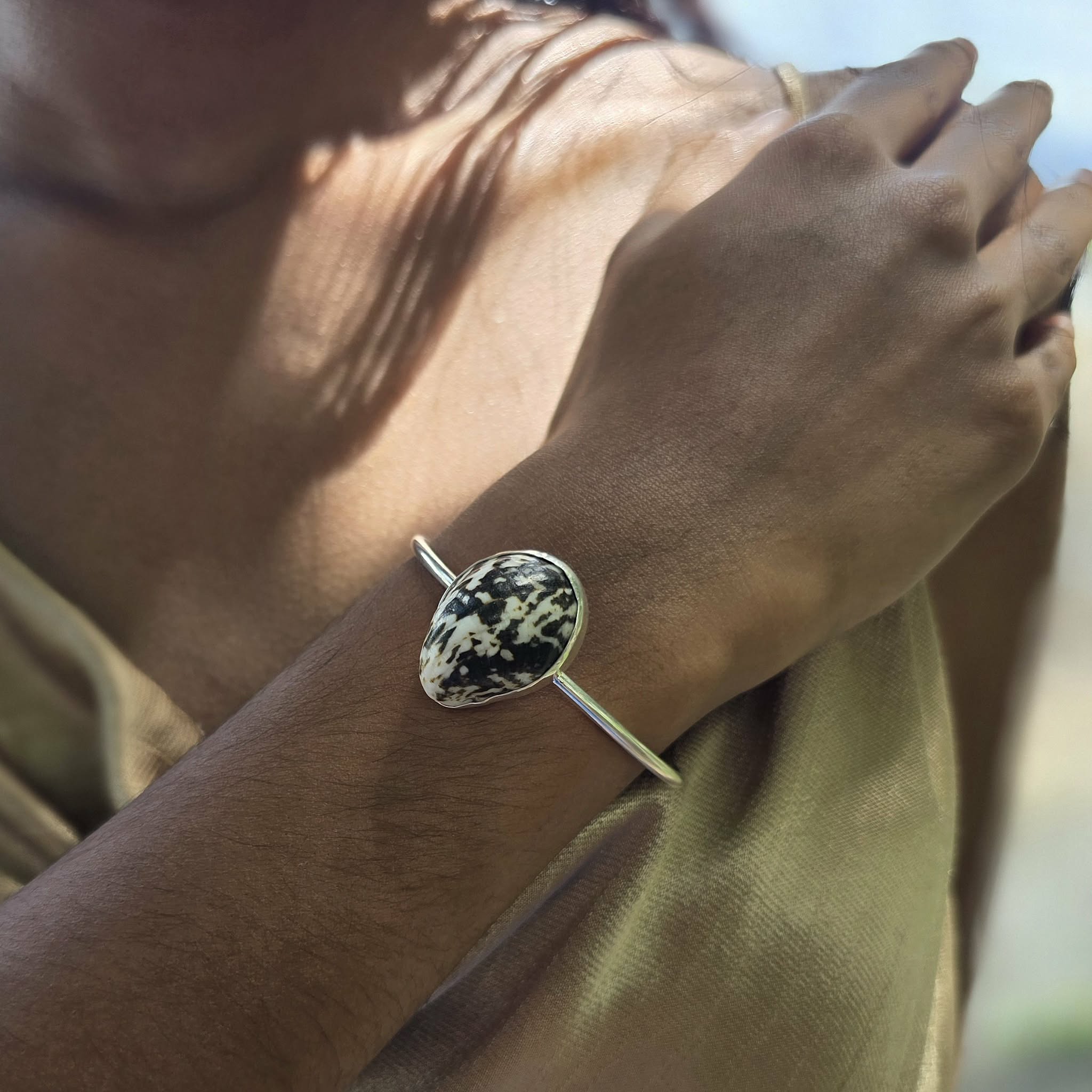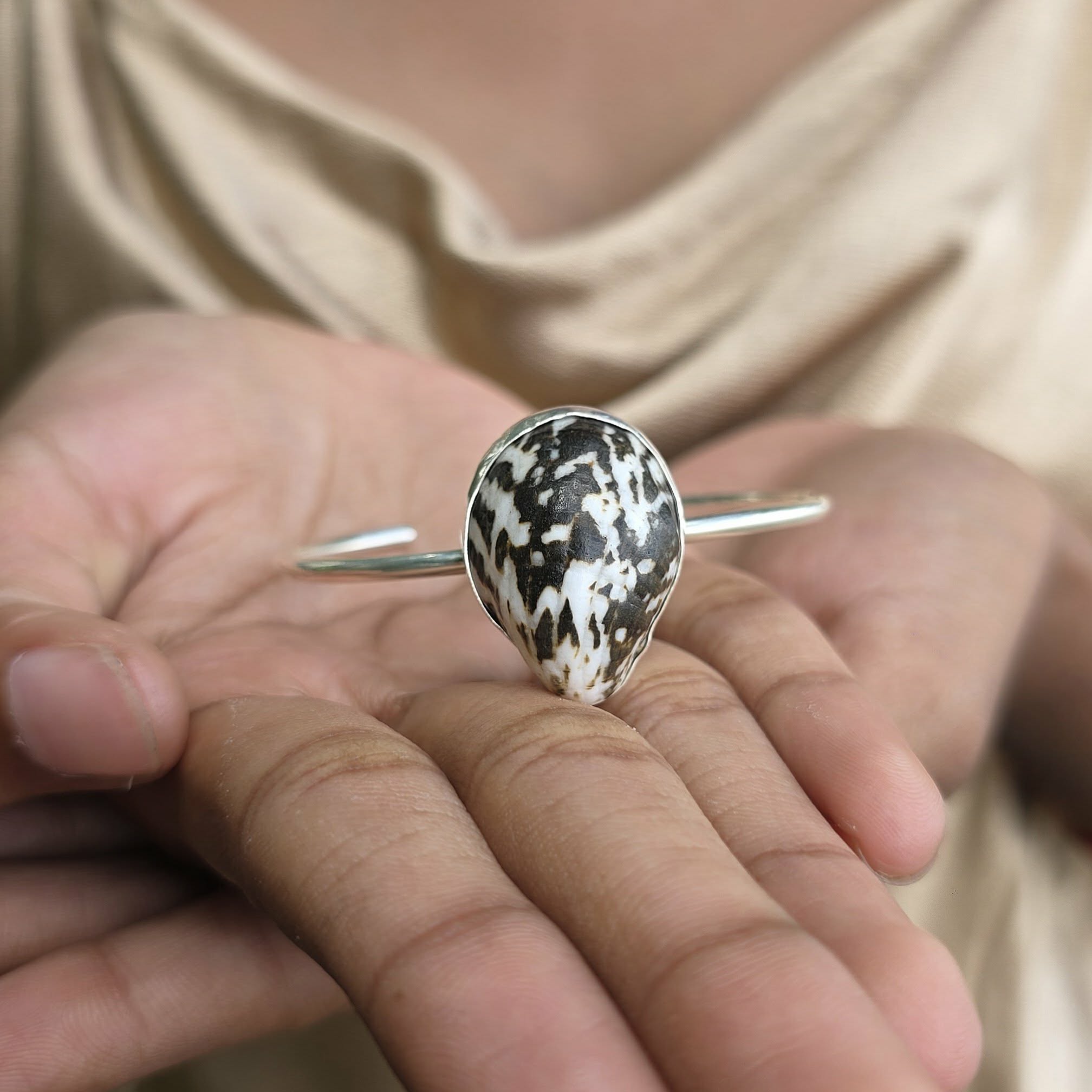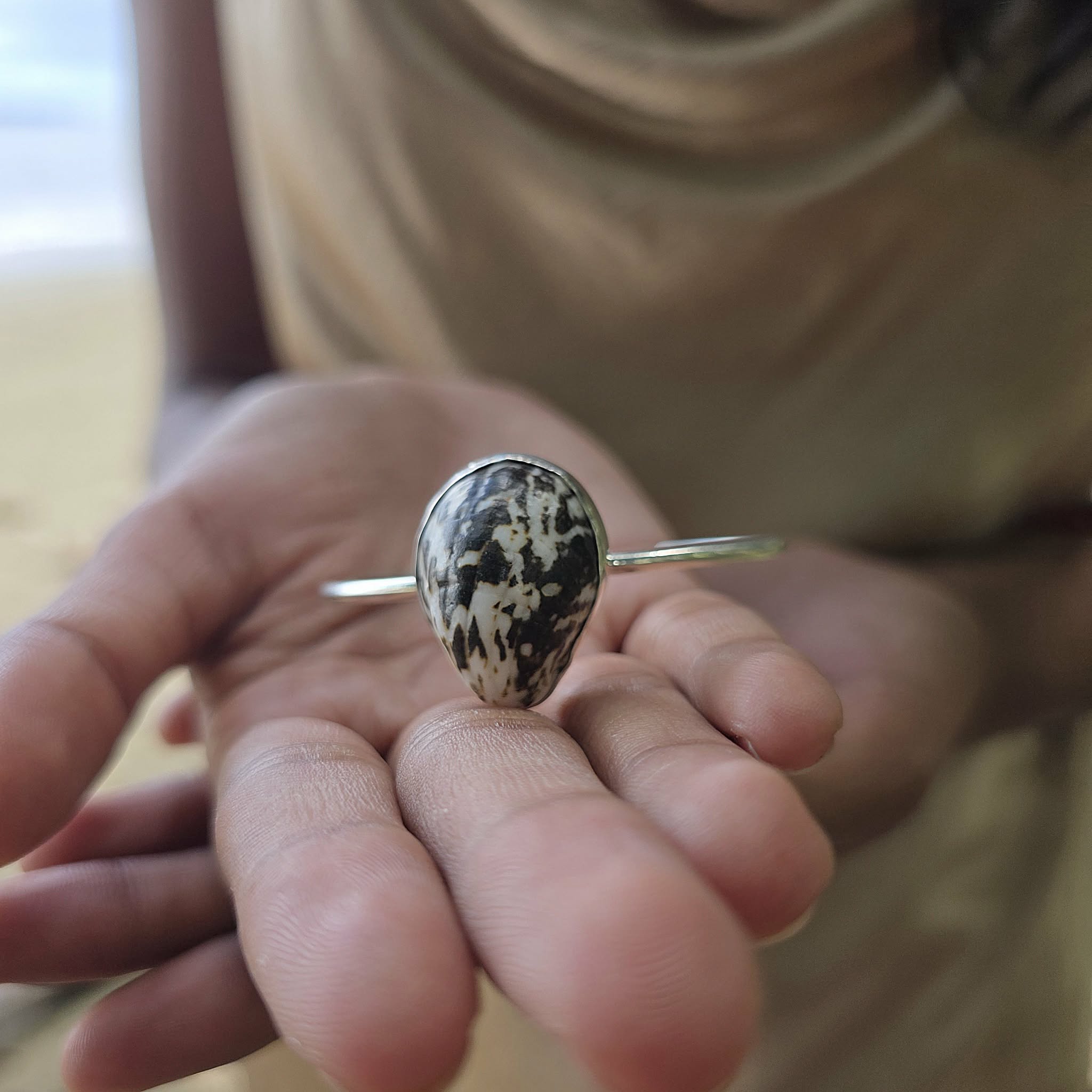 SHELL - all natural shell found on one of Fiji's beautiful beaches, bezel setting: length - 2.5 cm, width - 2.8 cm