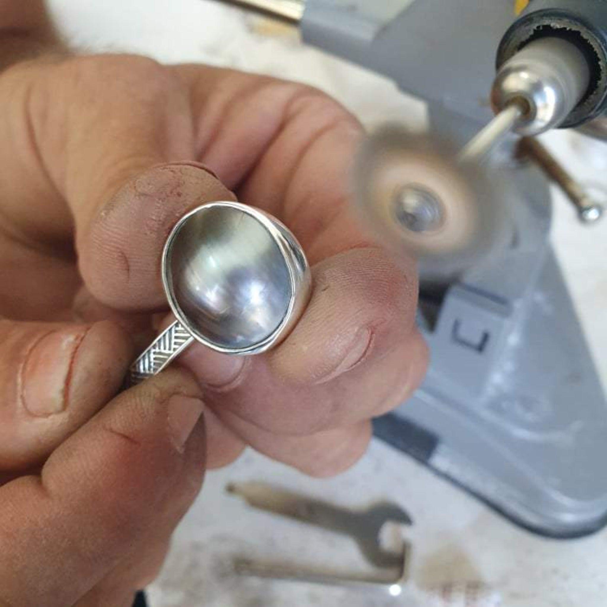 No glues are used for bezel settings. We use traditional setting techniques and the pearl is very secure.