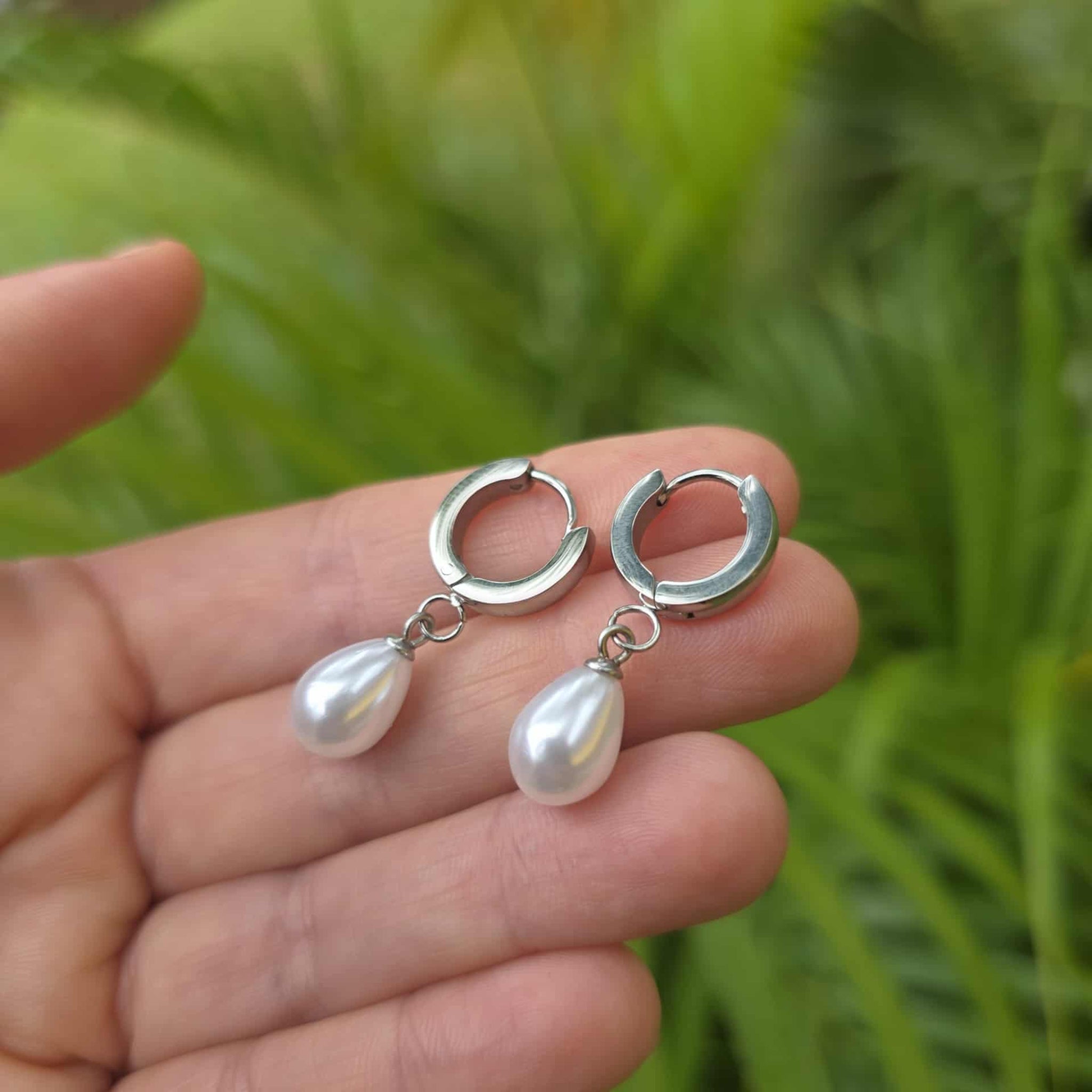 READY TO SHIP Freshwater Pearl Huggie Earrings - Stainless Steel FJD$