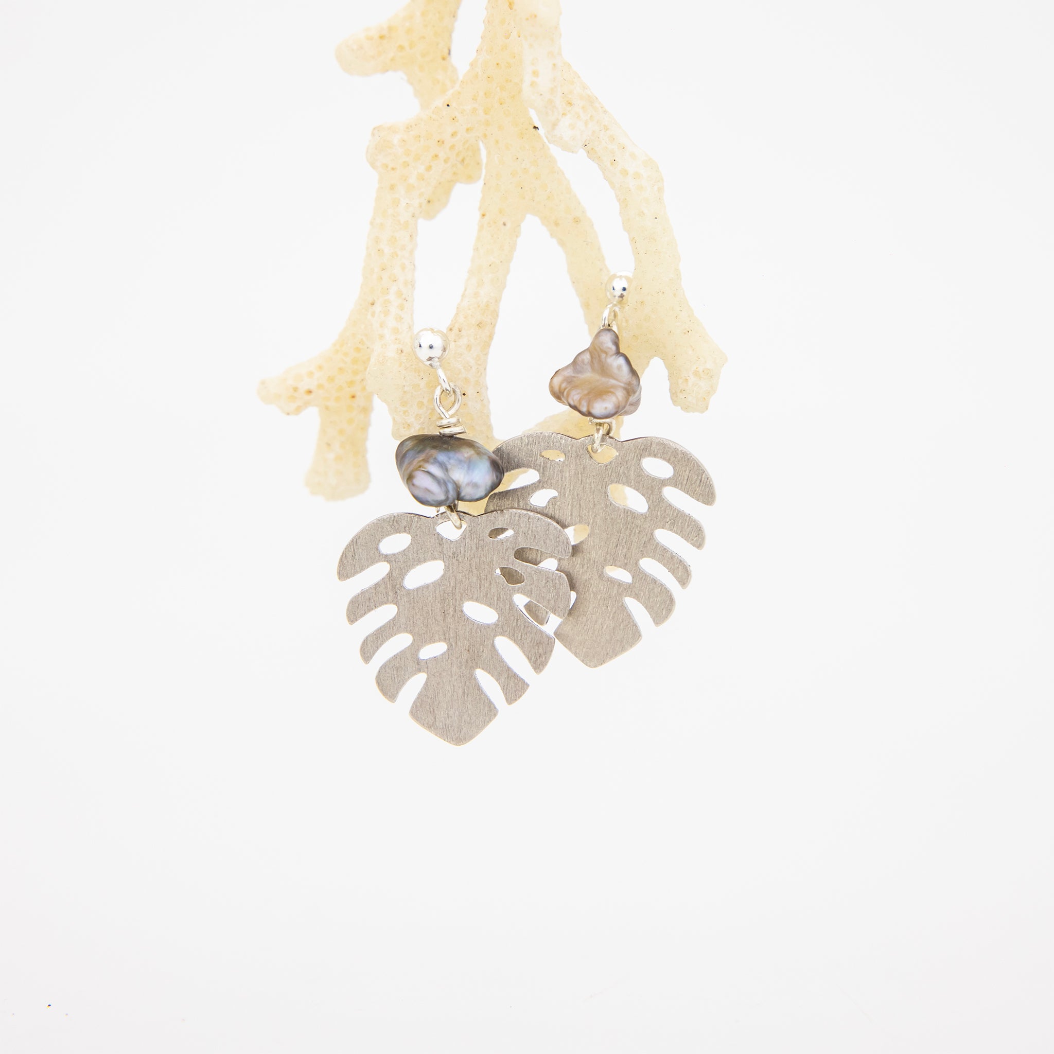 READY TO SHIP Monstera & Keshi Pearl Stud Earrings - 925 Sterling Silver FJD$